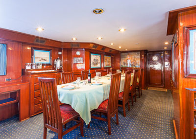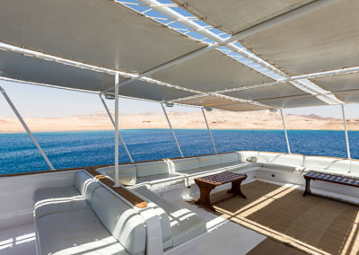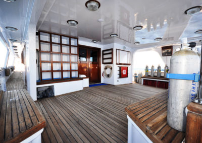 Our luxury liveaboard provides elegant accomodation with spacious living, combined with practical kitting up and service areas. The Yacht also benefits from a large open sun deck with comforable loungers and seating areas with a bar, the perfect place for relaxing when cruising between dives.