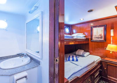 The main cabin deck is cleverly crafted to provide luxurious en-suite double cabins for the ultimate comfort of our diving guests. The upper deck has two en-suite premier cabins for the ultimate in cabin comfort.